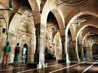 Each of the four corners of the mosque is marked by cylindrical minarets or towers, ending in small domed pinnacles another common feature in Sultanate-era mosques.
