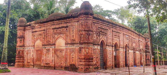 This magnificent terracotta Hindu temple stands in Dinajpur, Bangladesh. Maharaja Pran Nath, a ruler of the region, founded this temple in the late 18th century. The construction ended in 1722 during the reign of his son Raja Ramnath. The temple is renowned for its intricate terracotta ornamentation. Today, it attracts both local devotees and tourists who admire its exquisite craftsmanship. Surrounding the temple, there are serene gardens and a large pond, creating a picturesque ambiance for visitors to explore. Today, the fort stands as a historical landmark, attracting both locals and tourists. Visitors can explore its impressive structures, such as the Diwan-i-Aam (public audience hall), the tomb of Pari Bibi, and the mosque of Shaista Khan.