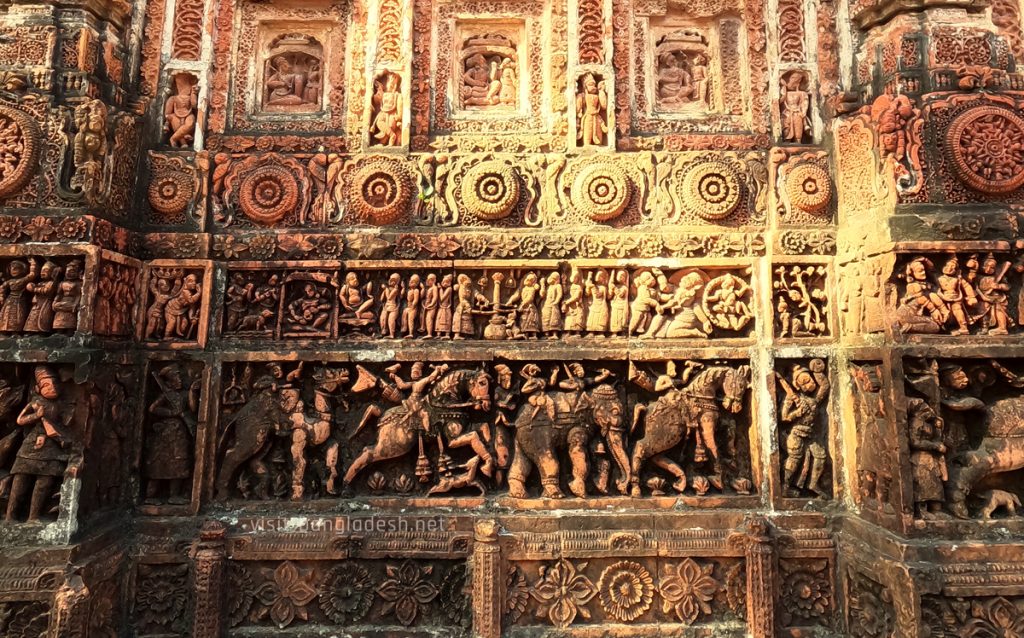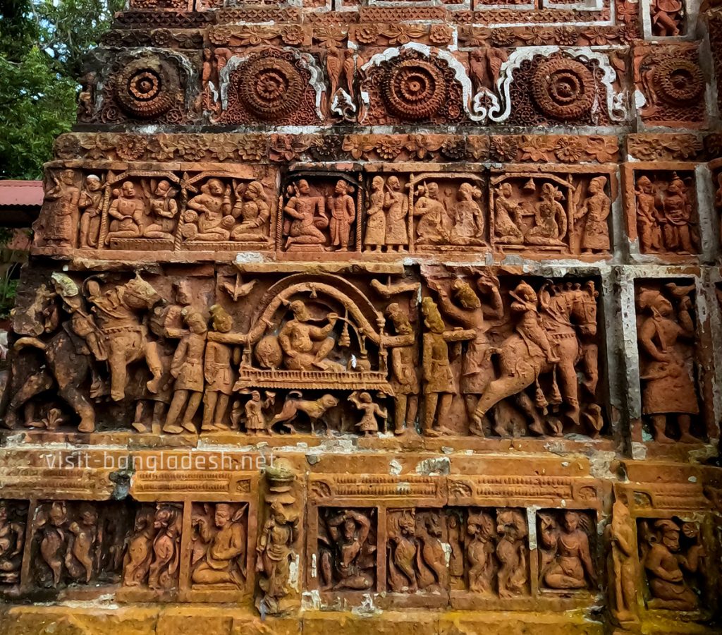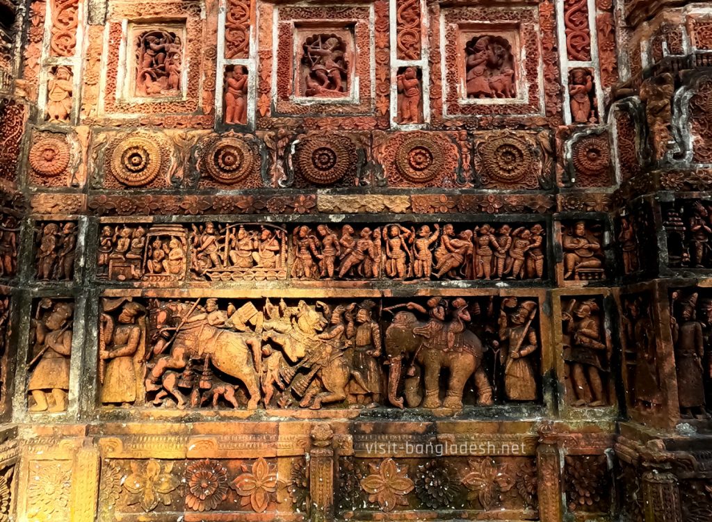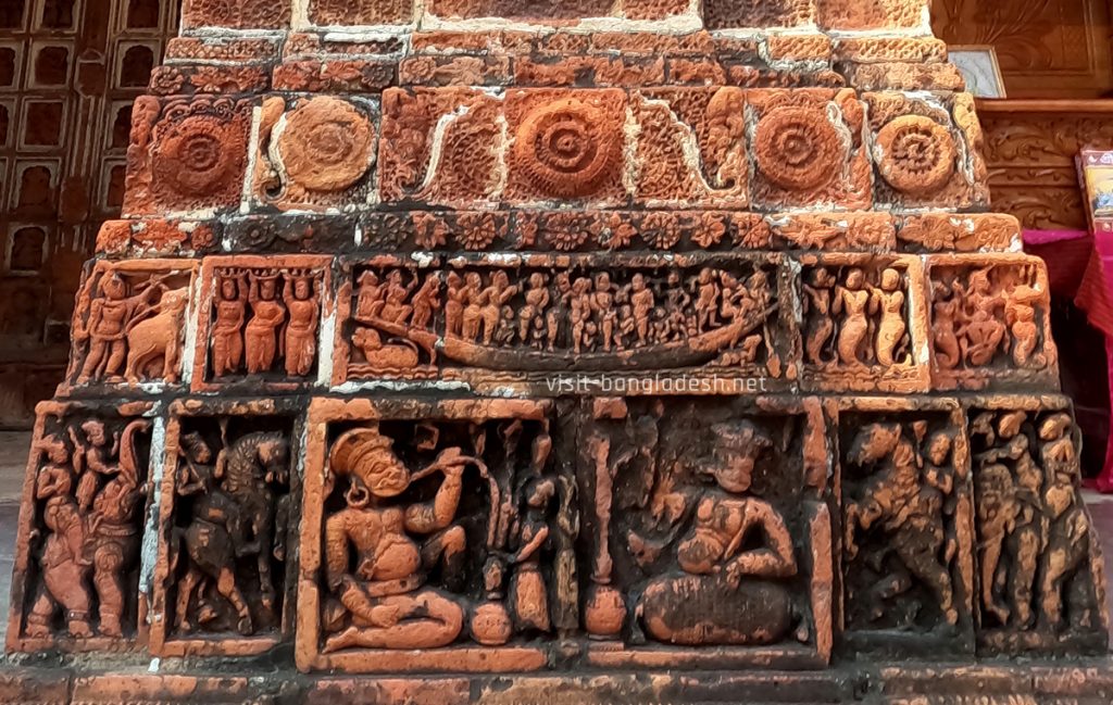 The most striking feature of Kantaji Temple is its terracotta ornamentation. Its walls are covered with over 15,000 intricately carved terracotta panels, each depicting scenes from: