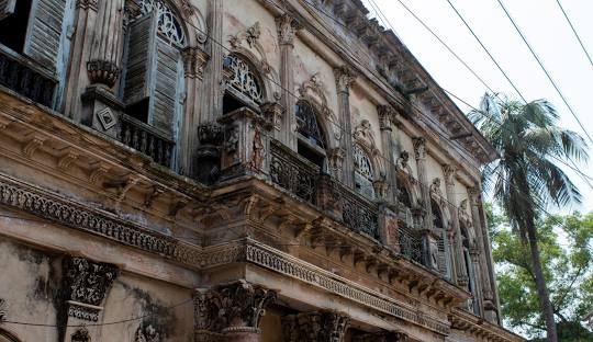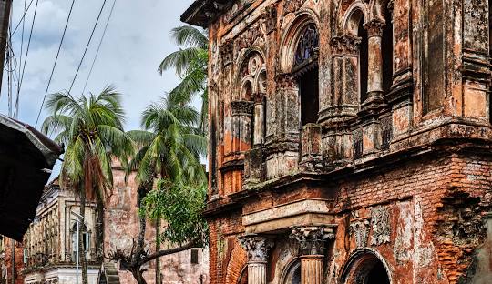 Each house has its own story. Some still have decorative tiles, old iron railings, and faded wall paintings that show the skill and creativity of the people who built them. Walking through these streets lets you see the beauty and history of a golden time in Bengal.